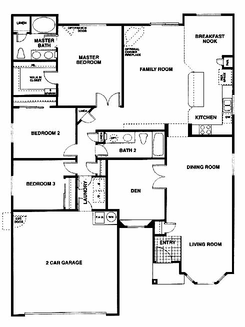 This spacious model offers a living room and dining room as you enter with the den off to the side. The large kitchen has a breakfast bar overlooking the family room and has a nook off to the side. The master bedroom offers a large walk-in closet with dual sinks and a garden tub. This home does give you the option for a 4th bedroom where the living room is.