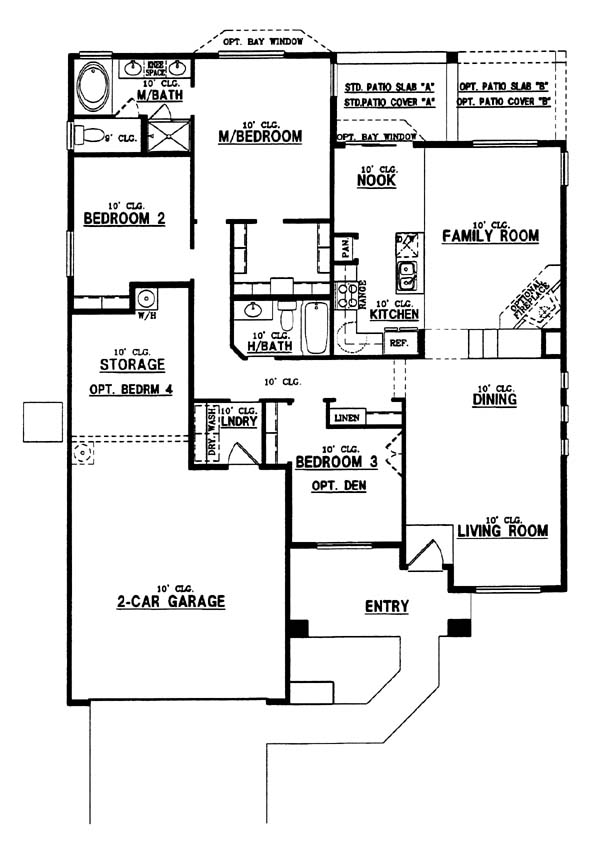 Ten foot ceilings throughout this wonderful home. Large living/dining/family room with optional fireplace. Kitchen with breakfast nook. Huge master bedroom with walk-in closet. Separate shower, dual vanities, and an oval garden tub in the master bath. The garage can have either optional storage space, or be converted to have a fourth bedroom.
