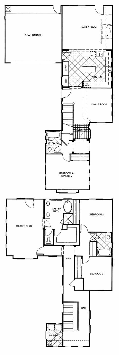 To your immediate left as you enter the home is the 4th bedroom and bath. Next you'll pass through the dining room just before you come to the kitchen with island and pantry. The kitchen is open to the family room with optional fireplace/entertainment center. Upstairs you'll find the 2nd and 3rd bedrooms, hall bath and the master suite and bath with a walk-in closet.