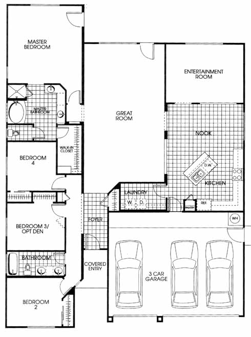 The tiled foyer takes you past the 2nd, 3rd and 4th bedrooms, hall bath and into the spacious great room. From the great room you can access the kitchen with nook, entertainment room and the master bedroom and bath with dual vanities and a walk-in closet.