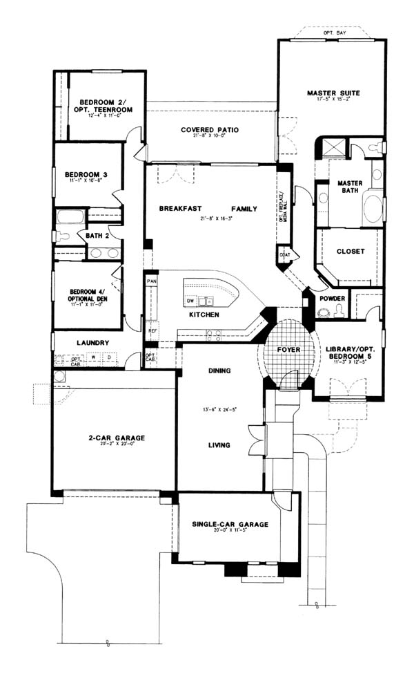 Retire to your library for a cordial or treat your guests to an overnight stay in the optional fifth bedroom. Enter this split plan and imagine the possibilities. Stylish separate entry to the living room from the walkway and front entry (oval foyer). The kitchen becomes the hub of everyday life in this plan with an open view of the breakfast and family rooms.