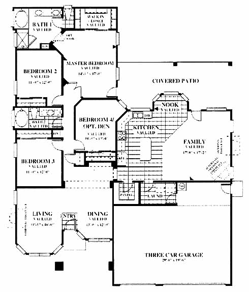 This luxurious home features vaulted ceilings and a spacious kitchen and family room designed for comfort and ease. The covered front entry invites you into the formal living and dining rooms. The master suite with walk-in closet includes a large master bath with cultured marble surrounds.