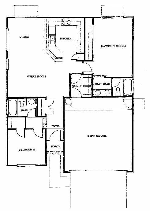 The entry takes you past the 2nd bedroom and bath and into the the large great room. From here you can access the dining room, kitchen with pantry and the master bedroom and bath with optional dual vanities.