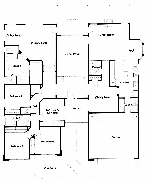 To your immediate left as you enter the home are 4 spacious bedrooms, hall bath and the owner's suite with sitting area and bath with dual vanities. Next you'll come to the living room which leads to the dining room, kitchen with nook and the massive great room with optional fireplace.