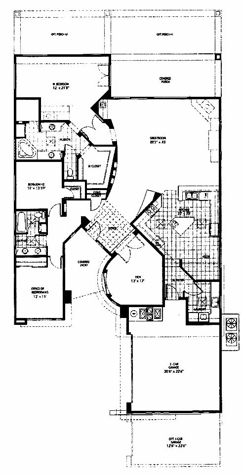 This home features a greatroom floor plan with a sweeping curved architecture. A covered porch leads into the ceramic tiled entry through an eight-foot entry door. The gourmet customized kitchen includes 42" upper cabinets, upgraded GE profile appliances, recessed can lighting and granite countertops. Some of the other custom features for this home include raised panel interior doors, artist niches, rounded corners with hand troweled wall textures, and insulated dual pane, low E windows.