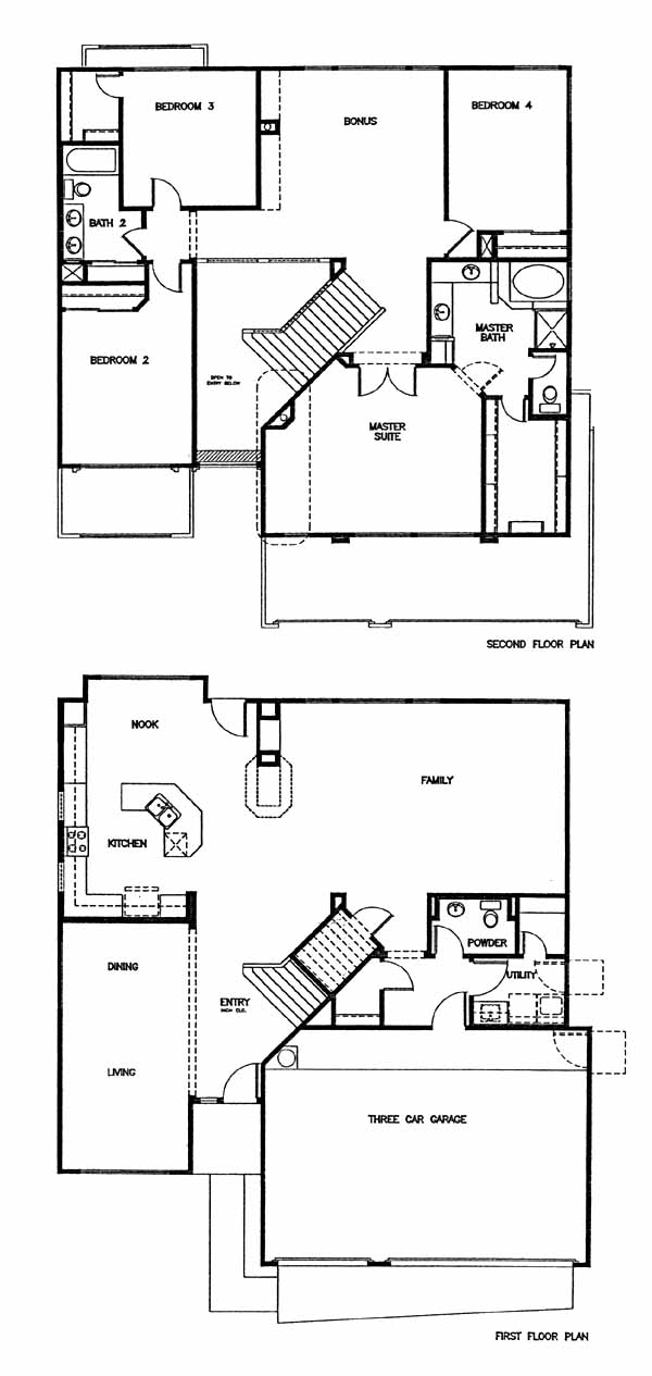 Upon entering this incredible home your breath will be taken away by the open entry that extends to the height of the second floor ceiling. Nearly the entire first floor is open with exception to the powder and utility rooms. The spacious kitchen boasts a beautiful island with sink and dishwasher and has a gourmet kitchen option. The only separation between this and the huge family room is an optional fireplace. In addition, the family room has an optional wet bar which is perfect for entertaining. As you make your way upstairs you can't help but notice the bonus room (optional 5th bedroom) with optional deck and expansive master suite. The master bath offers split dual cultured marble sinks and garden tub, as well as an expansive walk in closet. There are three additional bedrooms on this floor. This home offers a three car garage.