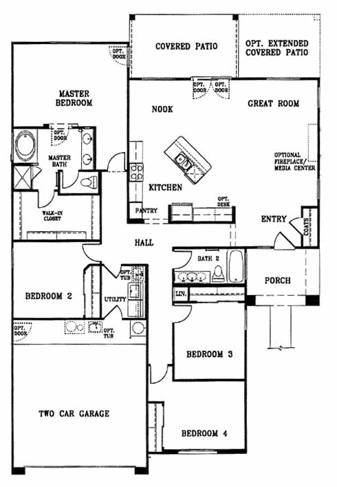 The large great room with optional fireplace/media center greets you as you enter the home. Open to the great room is the kitchen with island and nook. Down the hall you'll find 3 spacious bedrooms and the master bedroom and bath with a walk-in closet.