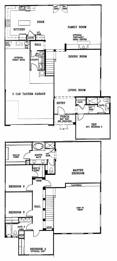 The entry takes you directly past the den with bath and into the large living and dining room. Next you'll come to the family room with optional fireplace. Open to the family room is the kitchen with pantry, island and breakfast nook. Upstairs you'll find 3 spacious bedrooms, hall bath and the impressive master bedroom and bath with dual vanities, tub, shower and a walk-in closet.