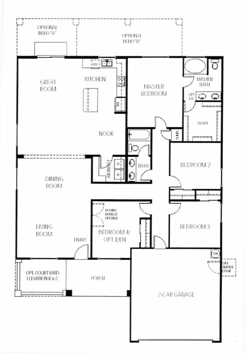 The large living and dining room greet you as you enter the home. Next you'll come to the spacious great room with optional fireplace. Open to the great room is the kitchen with pantry, island and breakfast nook. Just down the hall you'll find 3 spacious bedrooms, hall bath and the impressive master bedroom and bath with a walk-in closet.