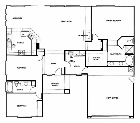 As you enter the home you'll find the flex room and the 2nd bedroom with hall bath on your immediate left. Next you'll come to the large great room with optional fireplace. From here you can access the kitchen with breakfast nook and the master bedroom and bath with a walk-in closet.