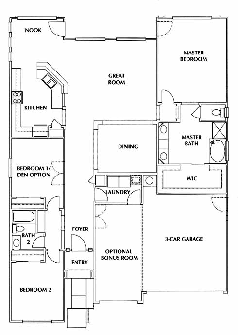 The foyer takes you directly past the 2nd and 3rd bedrooms, dining room and into the great room. From here you can access the kitchen with nook and the massive master bedroom and bath with a walk-in closet.