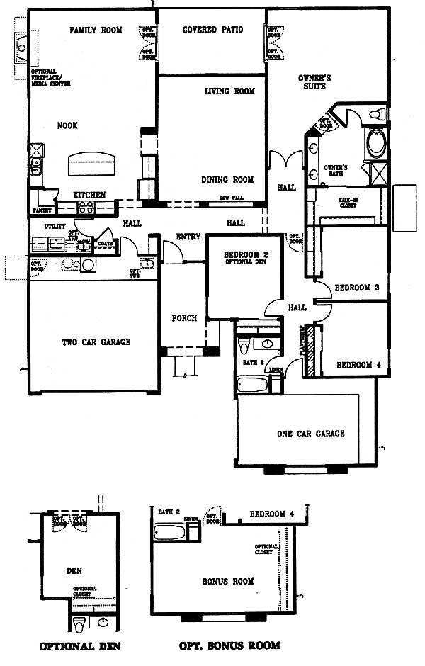 Spacious single level home with vaulted ceilings and a large family room. Southwestern designed home with covered entry, versatile layout and custom options such as a workshop, fireplace, bonus room, and a covered patio.