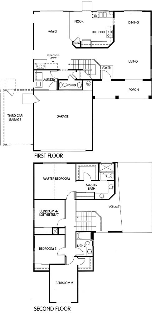 This is a two-story traditional home with a three car garage, kitchen with a breakfast nook, optional loft and a large master retreat.