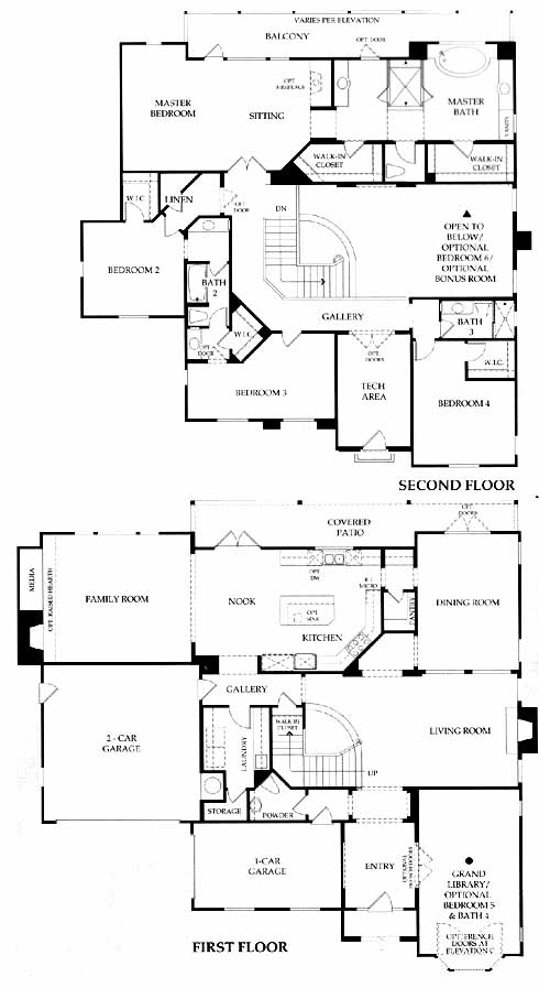 As you enter the home you'll immediately pass the grand library on your right just before you come to the large living room with fireplace. From here you can access the dining room and kitchen with island and nook which leads to the family room. Upstairs you'll find the 2nd bedroom with bath, 3rd and 4th bedrooms, hall bath, tech area, bonus room and the enormous master bedroom with sitting area and master bath with his and her walk-in closets.