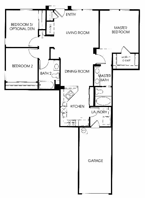 The large living and dining room with optional fireplace greets you as you enter the home. >From here you can access the 2nd and 3rd bedrooms, hall bath, kitchen with pantry and the master bedroom and bath with a walk-in closet.