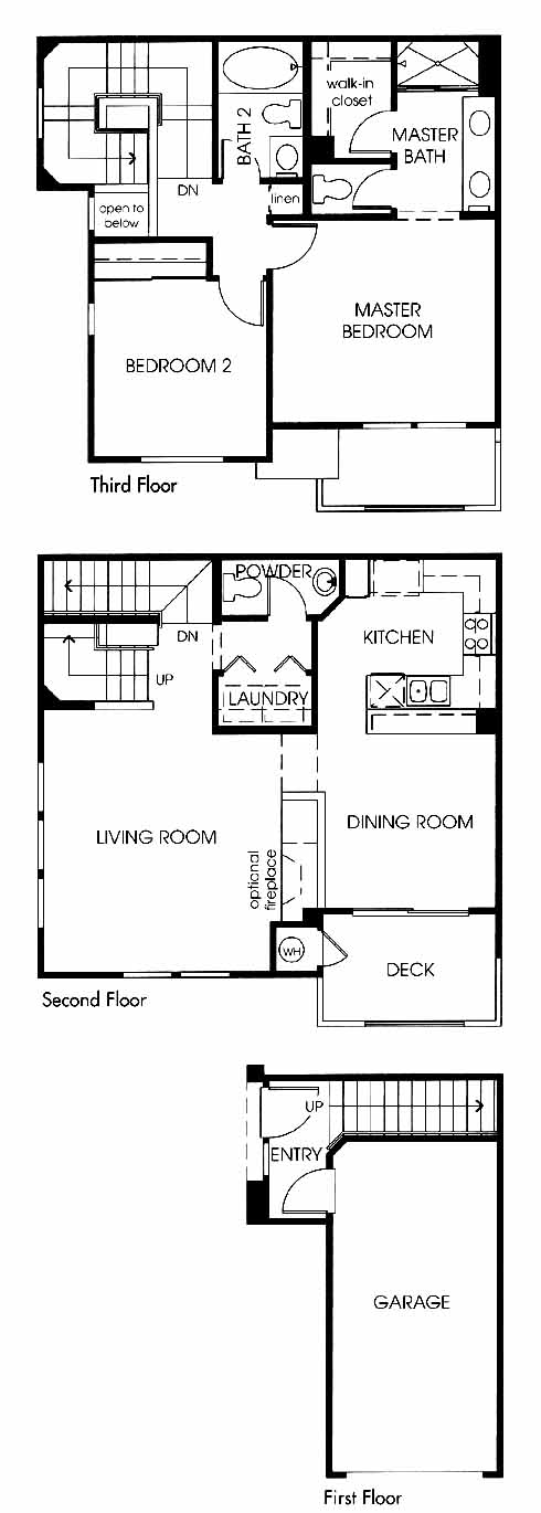 The large living and dining room with optional fireplace greets you as you enter the home. >From here you can access the kitchen with pantry. Upstairs you'll find the 2nd bedroom, hall bath and the master bedroom and bath with a walk-in closet.