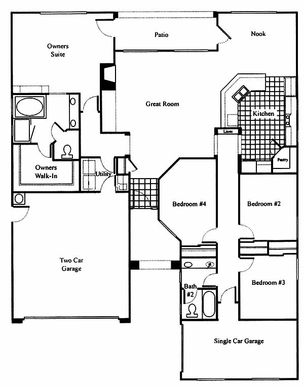 This appealing single-story home borrows from the early Spanish influence of this community. This home is built as a fourth bedroom home with a three car garage or a fifth bedroom with a two car garage.