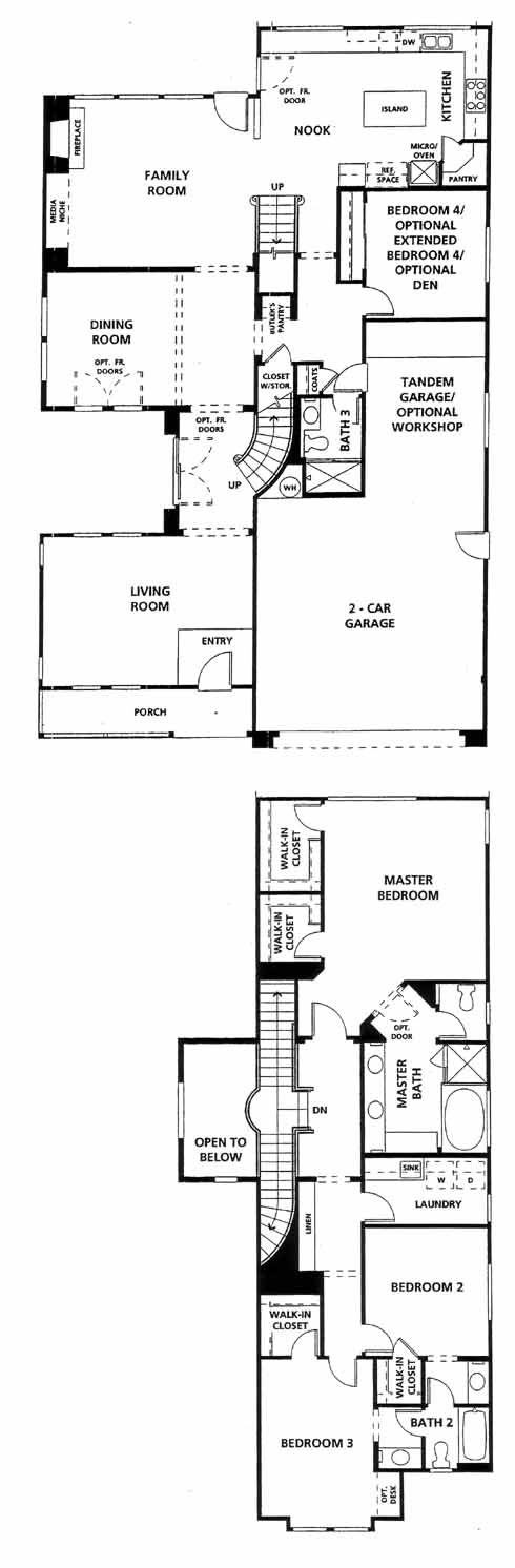 The entry takes you directly into the lovely living room. Next you'll pass the dining room just before you come to the family room with fireplace and media niche. From here you can access the nth bedroom and the kitchen with island and breakfast nook. Upstairs you have the 2nd and 3rd bedrooms with Jack and Jill bath and the massive master bedroom with his and her walk-in closets and master bath with dual vanities.