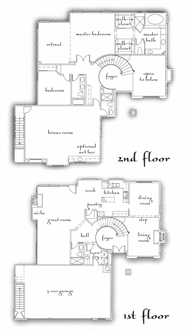 Features covered porch entry. Grand, circular foyer and finely crafted circular staircase. A huge great room adjoins the kitchen, which features a center island and custom oak cabinetry. Master suite has a retreat, 'his and hers' walk in closets, and a spacious deluxe bath. Found in a community known for its casual living style. Close to everything - shopping, schools, business, and recreation.
