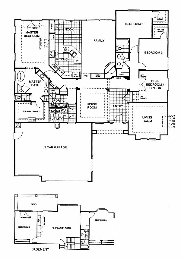 Gourmet kitchen, pantry with tile floors, optional courtyard entry. Three car garage with optional work shop, if you want you can have a basement with patio and fifth and sixth bedroom plus bath.