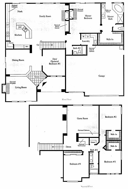 A dramatic entry opens to a living room with a fireplace. Formal dining room. Master suite with a huge walk-in closet and luxurious bath with oversized tub and shower. Modern designer kitchen with a service island and a walk-in pantry plus a breakfast nook. Family room with fireplace and an optional media center. Upstairs game room.