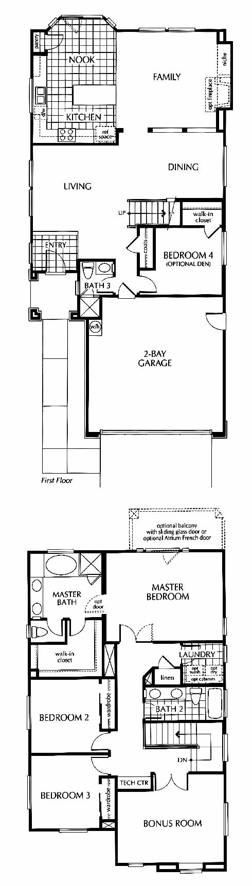 The tiled entry takes you directly into the large living and dining room area. From here you can access the 4th bedroom with bath, family room with media niche and optional fireplace and the tiled kitchen with pantry and nook. Upstairs you have the 2nd and 3rd bedrooms, hall bath and the massive master bedroom and bath with a walk-in closet and dual vanities.