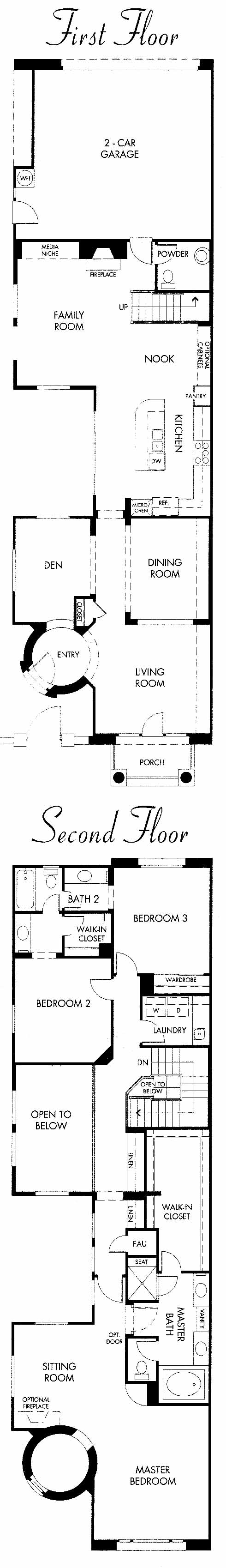 The stunning rotunda entry flanked by the living room and den takes you past the lovely dining room and into the kitchen with island and nook. From here you can access the family room with fireplace and media niche. On the second floor you'll find the 2nd and 3rd bedrooms with Jack and Jill bath and the massive master bedroom with sitting room and master bath with dual vanities and a walk-in closet.