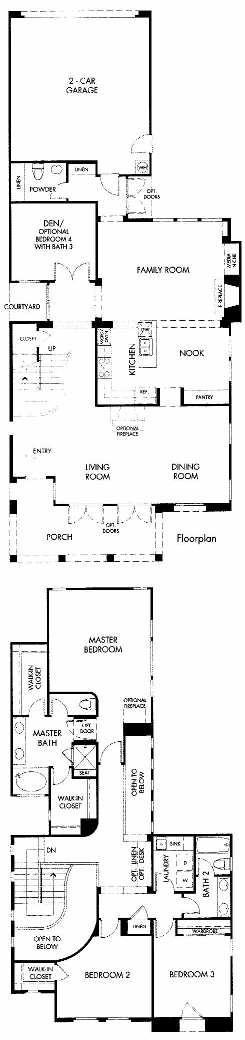 The entry takes you directly into the large living and dining room with optional fireplace. Next you'll pass the den just before you come to the kitchen with island, pantry and breakfast nook. The kitchen is opens to the family room with fireplace and media niche. Upstairs you'll find the 2nd and 3rd bedrooms, hall bath, loft area and the stunning master bedroom and bath with his and her walk-in closets and dual vanities.