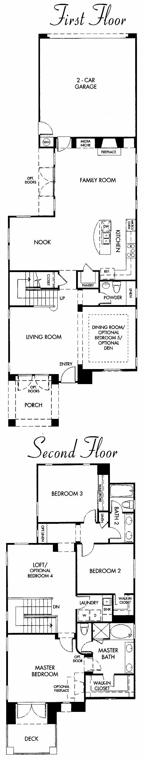 The entry takes you directly into the large living and dining room area. Next you'll pass the powder room just before you come to the kitchen with island, pantry and breakfast nook. The kitchen is opens to the family room with fireplace and media niche. Upstairs you'll find the 2nd and 3rd bedrooms, hall bath, loft area and the gorgeous master bedroom and bath with a walk-in closet and dual vanities.