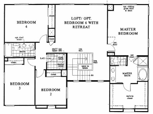 The tiled entry takes you past the study and den just before you come to the large living and dining room area. Next you'll come to the family room with media niche and tiled kitchen with optional island. Upstairs you'll find the 2nd, 3rd and 4th bedrooms, loft area, hall bath and the massive master bedroom and bath with a walk-in closet.