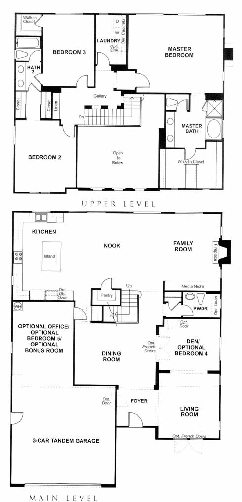 The foyer takes you past the living and dining room and the den just before you come into the family room with media niche and fireplace. From here you can access the kitchen with island and nook. Upstairs you'll find the 2nd and 3rd bedrooms with Jack and Jill bath and the master bedroom and bath with a walk-in closet.
