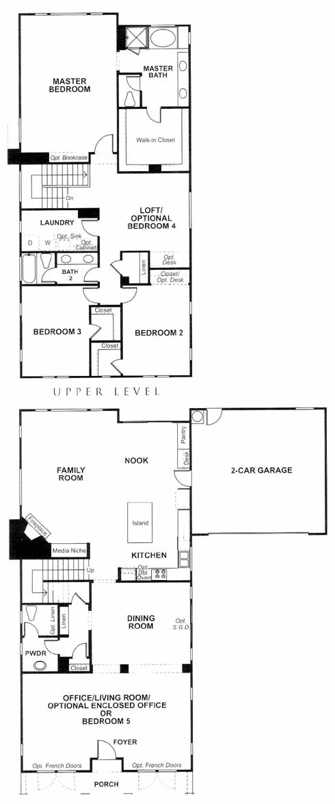 The large living room greets you as soon as you enter the home. Next you'll pass through the lovely dining room just before you come to the family room with fireplace and media niche. Open to the family room is the kitchen with island and nook. On the second floor you'll find the 2nd and 3rd bedrooms, loft area and the master bedroom and bath with dual vanities.