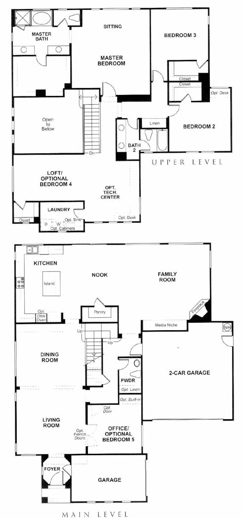 The foyer takes you past the office and into the spacious living and dining room. Next you'll come to the kitchen with island and nook. From here you can access the family room with fireplace and media niche. Upstairs you have the 2nd and 3rd bedrooms, hall bath, large loft area and the impressive master bedroom and bath with dual vanities.