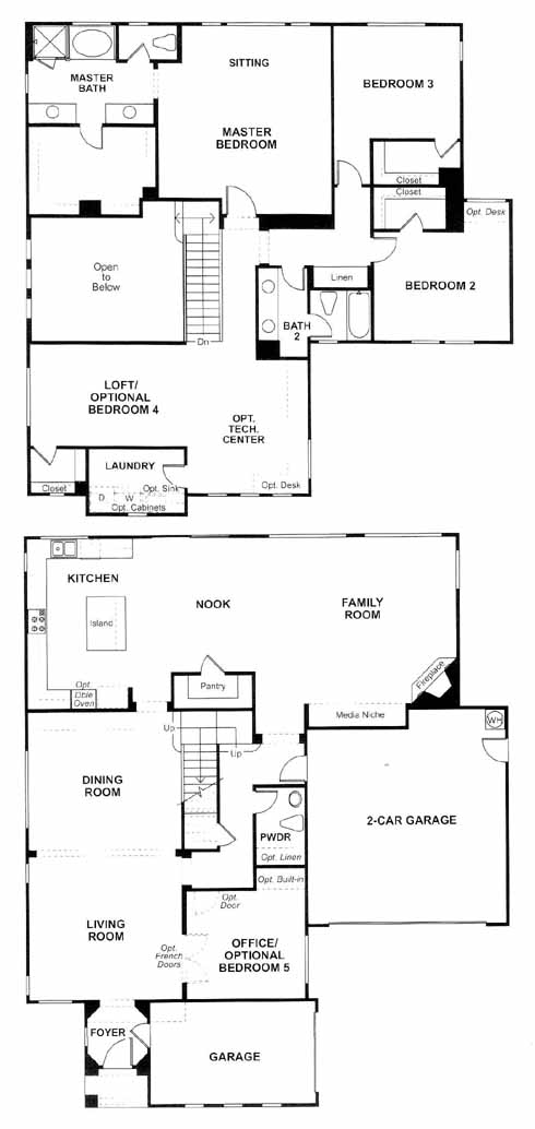The foyer takes you past the office and into the spacious living and dining room. Next you'll come to the kitchen with island and nook. From here you can access the family room with fireplace and media niche. Upstairs you have the 2nd and 3rd bedrooms, hall bath, large loft area and the impressive master bedroom and bath with dual vanities.
