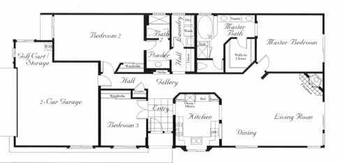 The tiled entry flanked by the kitchen and 3rd bedroom takes you into the gallery. From here you can access the 2nd bedroom with bath, master bedroom and bath and the large living and dining room with fireplace.