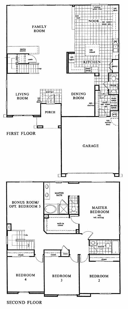 The tiled entry flanked by the living and dining room takes you into the large family room with media alcove. From here you can access the tiled kitchen with pantry and nook. Upstairs you'll find the 2nd, 3rd and 4th bedrooms, hall bath, huge bonus room and the stunning master bedroom and bath with dual vanities and a walk-in closet.