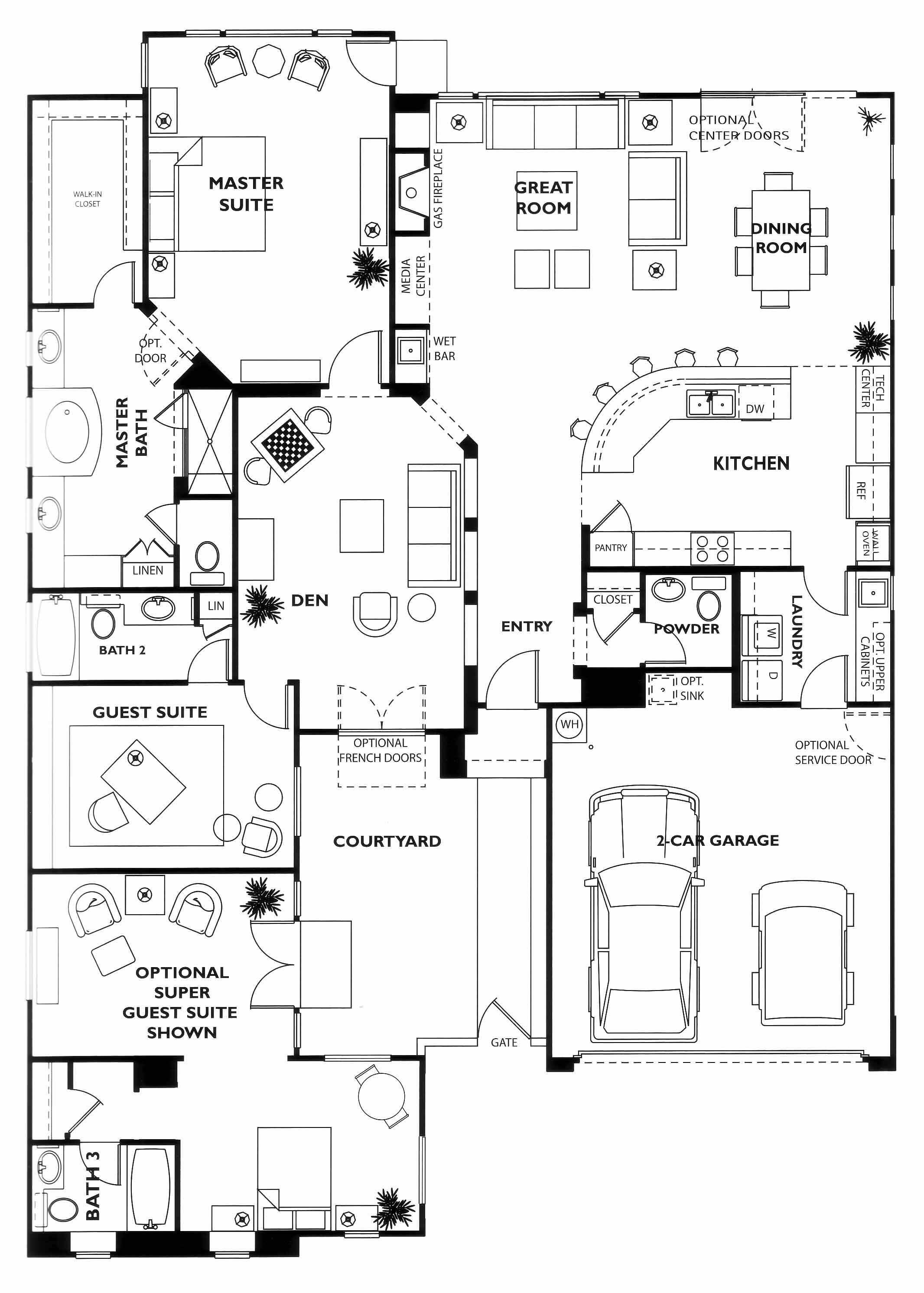 As you enter the home you'll immediately pass the den,which access's the guest suite with bath, just before you come to the great room with gas fireplace. From here you can access the dining room, kitchen with pantry and the gorgeous master suite and bath with dual vanities.