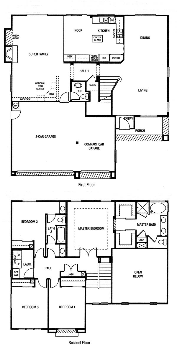 Two story home featuring comfortable open living area and a spacious kitchen with island. Optional tech center. Prestigious community, offering many recreational amenities.
