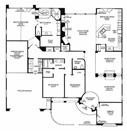 The two story foyer takes you past the library and into the lovely living room with fireplace. Next you'll pass the dining room just before you come to the family room with media niche and standard fireplace. Open to the family room is the kitchen with pantry and breakfast nook. Down the hall you'll find the 2nd and 3rd bedrooms, hall bath and the massive master bedroom and bath with a walk-in closet and dual vanities.