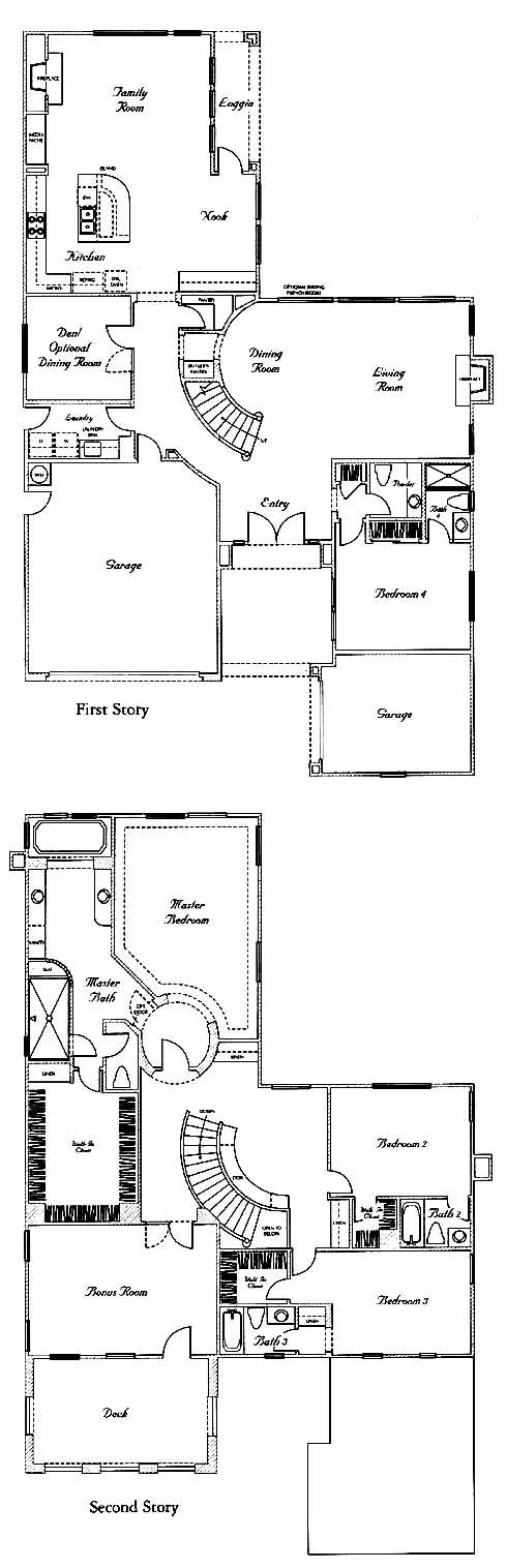 The entry takes you directly past the 4th bedroom with bath and into the large living and dining room with fireplace. As you continue through the home you'll pass the den just before you come to the kitchen with nook and the family room with media niche and fireplace. Upstairs you have the 2nd and 3rd bedrooms, each with their own baths, bonus room and the master bedroom and bath with a walk-in closet.