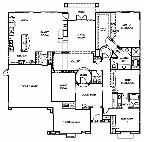 The beautiful courtyard takes you up to the entrance of the stunning home. The entry takes you directly into the lovely living room. To your left you'll find the dining room, family room with fireplace and the kitchen with island and nook. On the other side of the home you have the 2nd and 3rd bedrooms with Jack and Jill bath and the impressive master bedroom and bath with dual vanities and a walk-in closet.