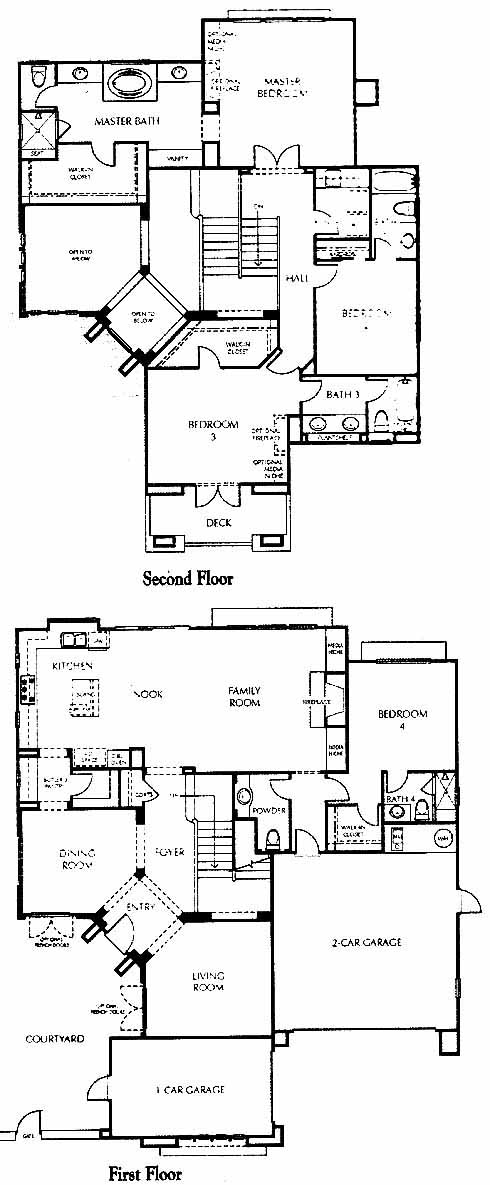 The entry flanked by the living and dining room takes you through the foyer and into the large family room with fireplace and media niche. Open to the family room is the kitchen with island and nook. Also accessible from the family room is the 4th bedroom with bath. Upstairs you have the 2nd and 3rd bedrooms, each with their own bath and the master bedroom and bath with a walk-in closet.
