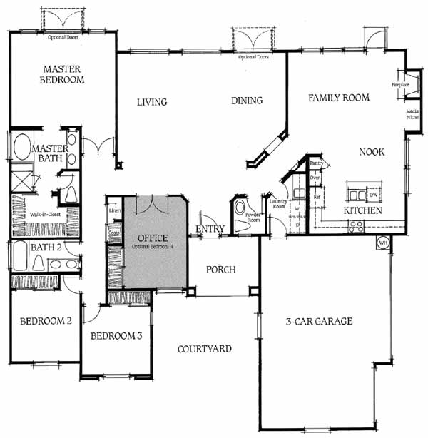 An inviting covered porch leads to bright and formal living areas that separate the family room and spacious kitchen from three comfortable bedrooms and a home office. Gourmet kitchen features a center island and ceramic tile concertos as well as natural stained oak cabinetry.