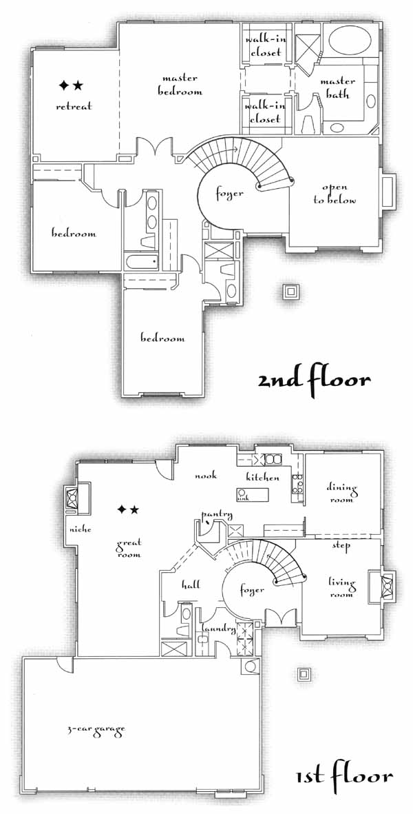 This home features a circular foyer entrance, styled, radius bull nose corners on the walls, a welcoming kitchen with custom finished oak cabinets, and a convenient center island. The great room is large and comfortable with its wood burning fireplace and media niche. The master suite is expansive with its sitting area, walk-in closet, and deluxe bath with large soaking tub.