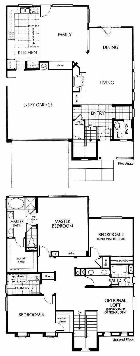The tiled entry takes you directly into the large living and dining room area. Next you'll come to the family room with media niche. From here you can access the tiled kitchen with pantry and optional island. Upstairs you'll find the 2nd, 3rd and 4th bedrooms, hall bath and the massive master bedroom and bath with a walk-in closet.