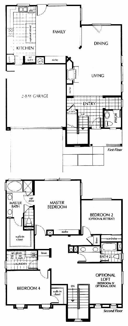 The tiled entry takes you directly into the large living and dining room area. Next you'll come to the family room with media niche. From here you can access the tiled kitchen with pantry and optional island. Upstairs you'll find the 2nd, 3rd and 4th bedrooms, hall bath and the massive master bedroom and bath with a walk-in closet.