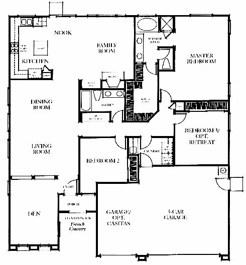 The entry takes you past the den and into the large living and dining room. Down the hall to your right you'll find the 2nd and 3rd bedrooms, hall bath and the massive master bedroom and bath with dual vanities. Next you'll come to the kitchen with nook and family room with fireplace.