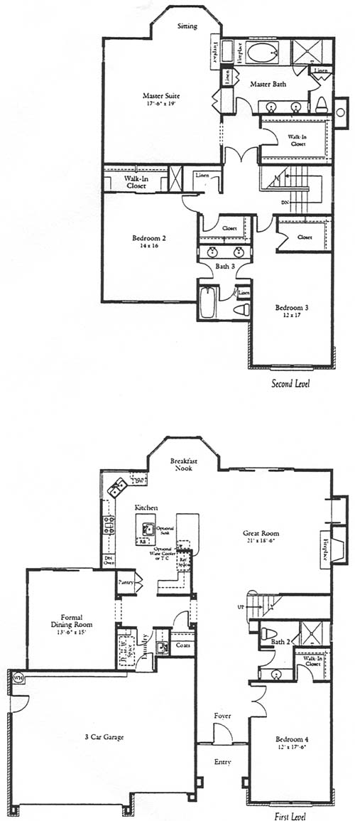 This home offers a formal dining room, bonus room and a great room with a fireplace that is located off of the kitchen. The kitchen features a breakfast nook and a gourmet island. Optional water cooler and sink in center island are available. The master suite has a sitting area and fireplace. The master bath has a separate enclosed shower and tub.