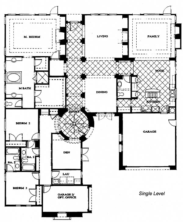 Private front courtyard leading to the rotunda entry. Optional library/den. Optional office. Comfortable family entertainment room, state of the art kitchen with a cozy breakfast nook and butler's pantry. Separate formal living and dining rooms.