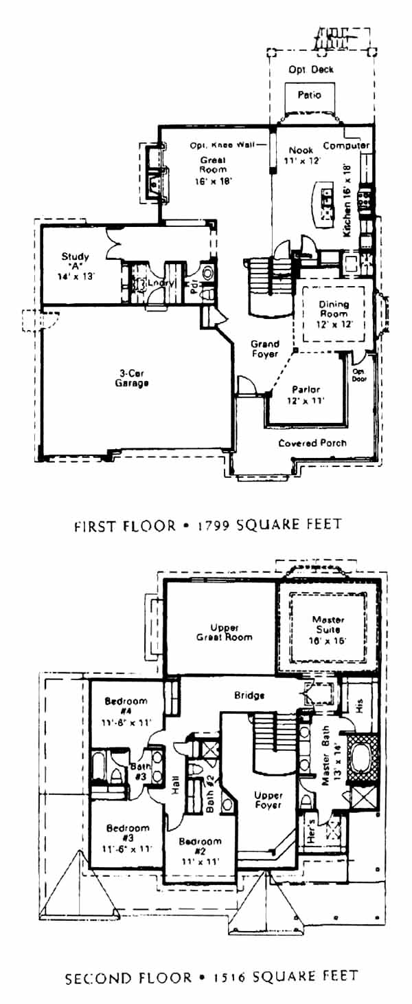 This home has a beautiful wrap around front porch that greets you as you enter. The grand foyer leads into the parlor and dining room. The expansive kitchen has a center island and a nook that looks out over the patio/optional deck. The great room is complete with a fireplace and 2-story ceiling. The private study offers a great office space or an additional bedroom. Upstairs the master suite is secluded from the rest of the bedrooms by a bridge, offering a true retreat for the owners. This flexible floor plan can also be customized further to fit any family's needs.